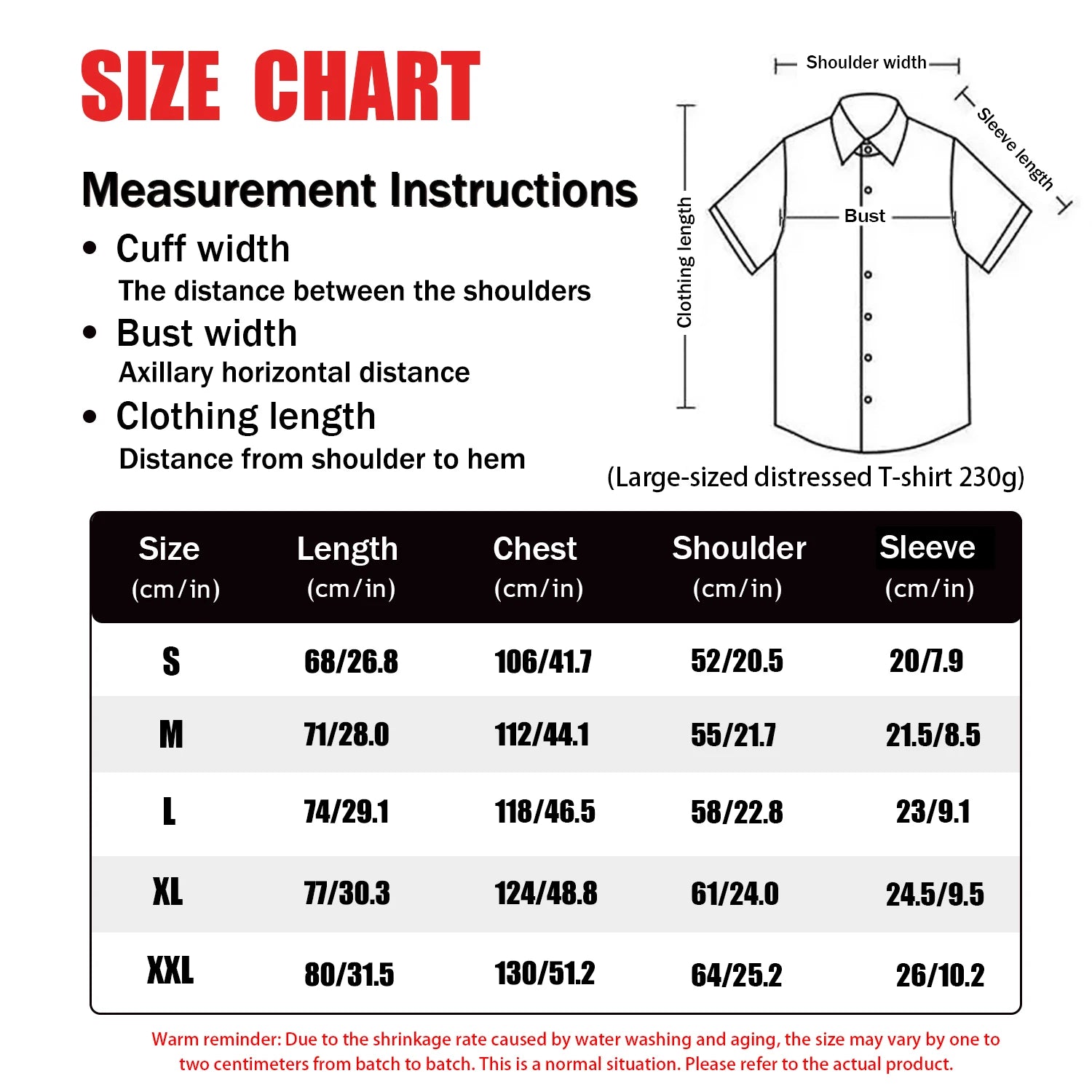 Measurement Note: Our sizes are listed in CM/Inches in the description. We suggest measuring your favorite tee at home and comparing it to our chart to ensure the perfect fit!